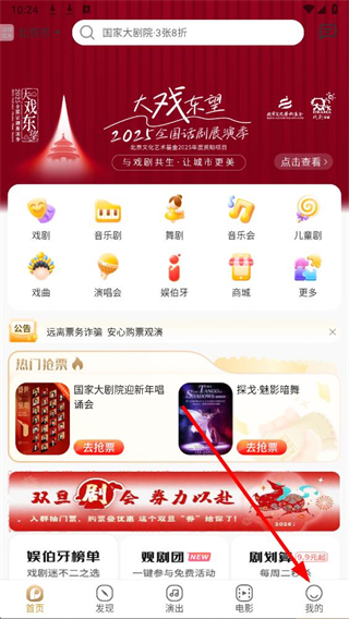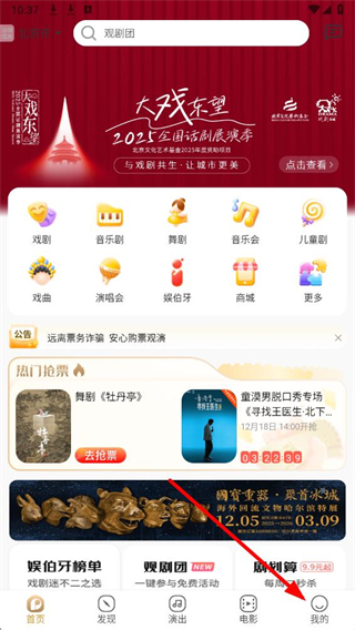 1、在保利票務app應用界面,點擊底部我的選項,進入我的頁面。