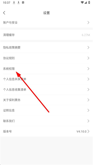 3、在設置界面,找到系統權限選項并點擊,進入權限授權設置頁面。