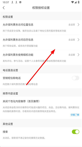 4、在權限列表中,選擇對應權限,點擊右側去設置即可管理權限狀態。