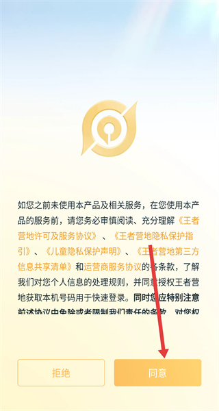 1、在打開王者營地App后,可以通過點擊同意按鈕,進入使用。