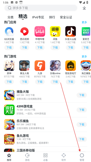 2、點擊底部導航欄的游戲選項,進入游戲界面,在該界面可通過新游標簽了解最新上線的游戲,也能在大家都在玩板塊發現當下熱門游戲,點擊游戲下方的下載即可安裝體驗。