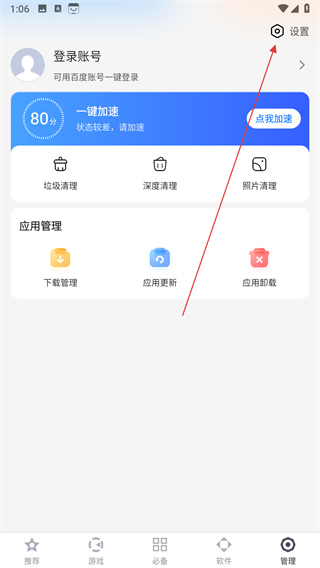 1、打開百度手機助手,點擊底部管理選項。