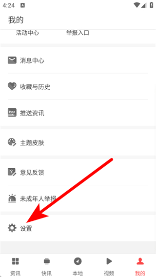 2、在我的頁面點擊設置,進入應用的設置操作界面。