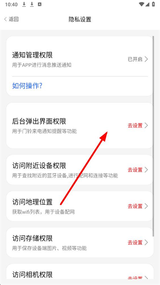 4、在隱私設置頁面,選擇對應權限,點擊去設置即可管理該權限。
