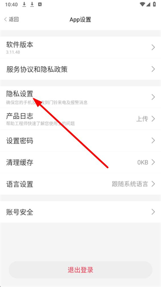3、在App設置界面里,選擇隱私設置選項,進入權限管理相關頁面。