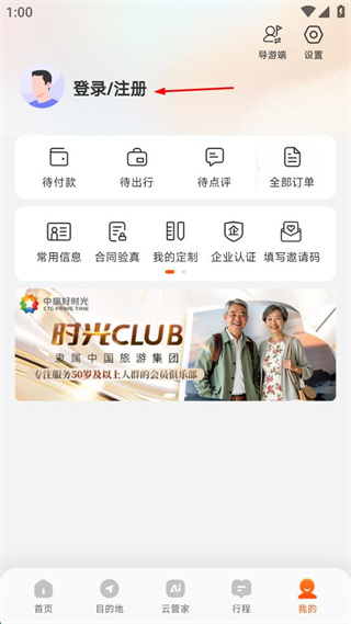 3、在我的頁面中,找到登錄/注冊區域,點擊該區域進入對應的登錄注冊界面。