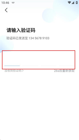 4、進入請輸入驗證碼頁面,等待驗證碼發送,將收到的驗證碼填入對應框內。