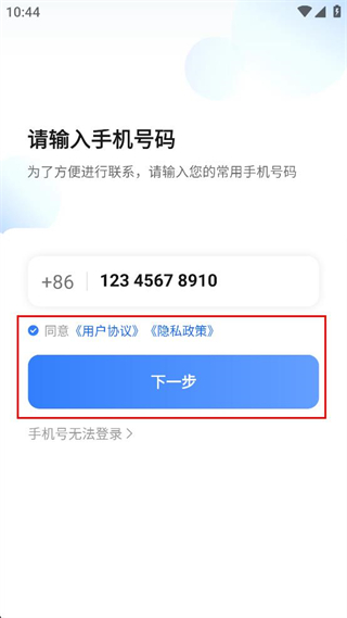 3、勾選同意用戶協議和隱私政策的選項,隨后點擊下一步按鈕繼續操作。