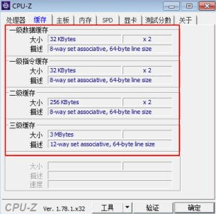 cpu-z的緩存中我們可以看到cpu處理器的一級、二級和三級緩存數據,由此可以判斷該處理器的性能。
