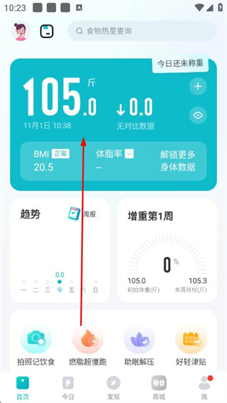 1、打開好輕APP,在首頁點擊體重區域,進入成分介紹頁面。
