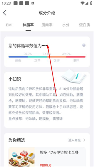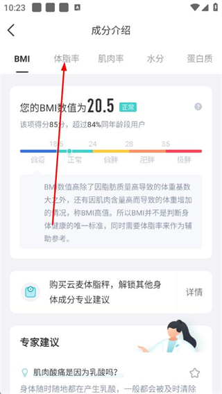2、在成分介紹頁面點擊“體脂率”標簽。