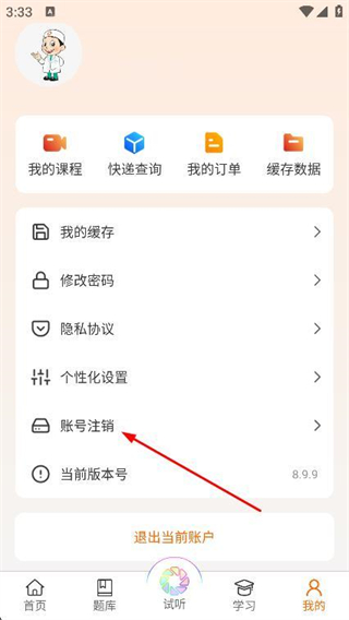 2、在個人中心頁面找到賬號注銷并點擊,進入注銷頁面。