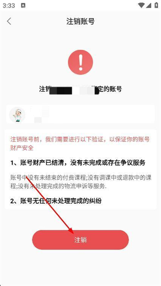 3、在注銷賬號頁面,注意注銷事項,點擊下方注銷按鈕。