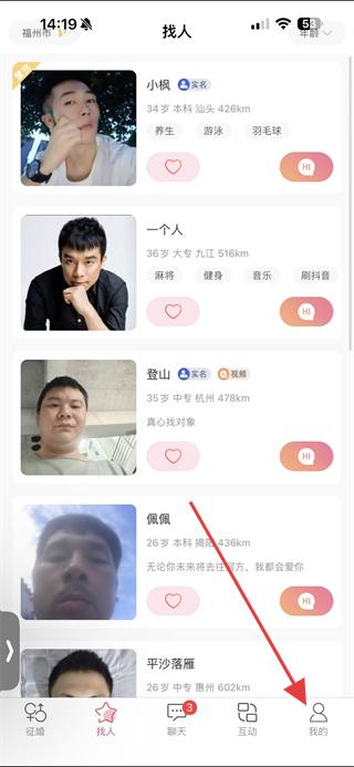 1、打開撿對象APP,點擊右下角我的,進入個人頁面。