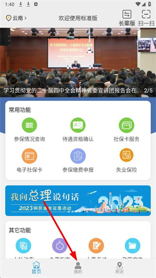 1、打開云南人社APP后,點擊底部導航欄我的選項,進入對應的個人界面。