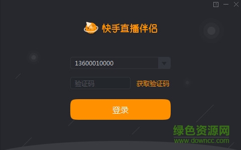 2.快手直播伴侶安裝完成后,程序會自動彈出登錄框,此時只要輸入您綁定快手賬號的手機號碼以及手機接收的驗證碼,就能快速登錄到直播伴侶了。