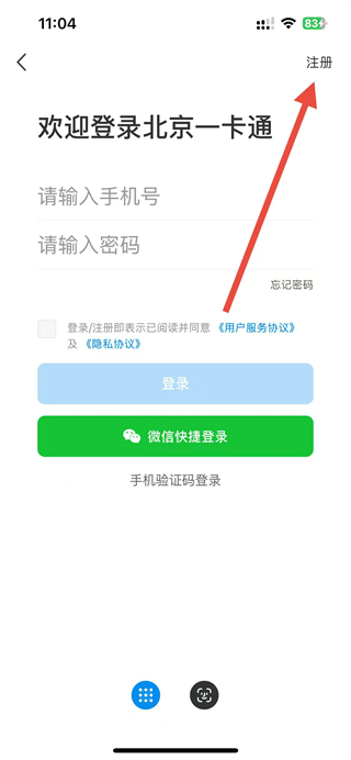 3、在登錄界面右上角,找到注冊選項并點擊,進入需輸入手機號與密碼的注冊相關頁面。