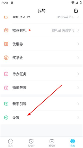 2、在個人中心頁面,找到并點擊下方設置選項。