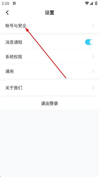 3、在設置頁面,找到并點擊上方的賬號與安全。