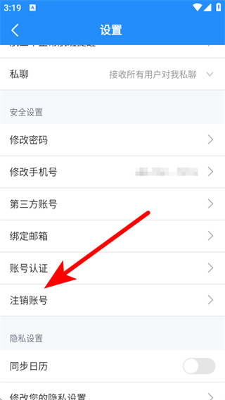 3、進入設置頁面后,選擇注銷賬號選項,進入注銷確認頁面。