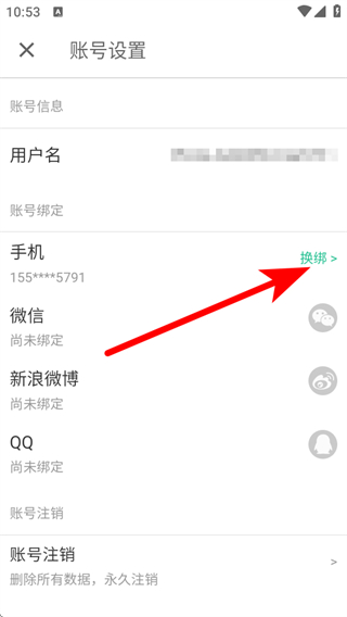 4、在賬號設置頁面,點擊手機右側的換綁按鈕,即可進行手機號碼換綁操作。