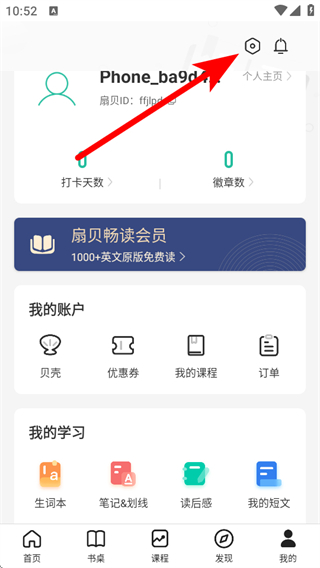 1、在扇貝閱讀app首頁,點擊右下角我的選項,進入個人頁面。