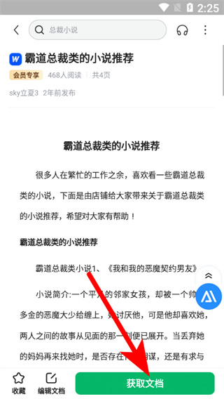 4、在文檔詳情頁面,點擊獲取文檔按鈕,即可查看該內容文檔。