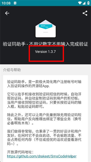 3、進入頁面后,即可查看驗證碼助手的版本信息。