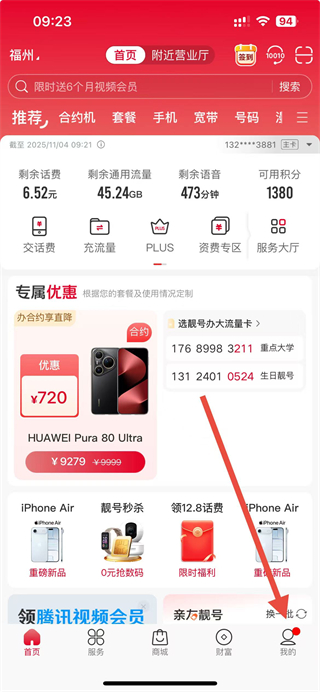1、打開中國聯通APP,點擊右下角我的進入個人頁面。