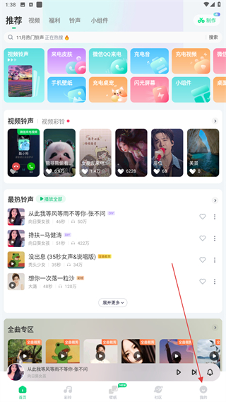 1、打開酷狗鈴聲的APP,進入首頁點擊右下角我的圖標。