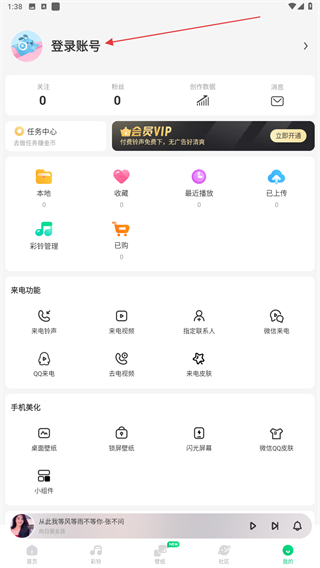 2、進入個人主頁內,點擊上方登錄賬號的功能按鈕。