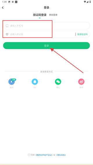 3、輸入手機號、驗證碼后,再點擊登錄的按鈕即可完成。