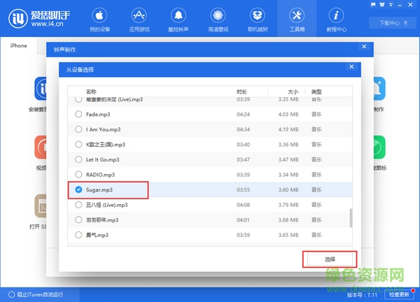 二、點“從電腦選擇”或“從設備選擇”,選擇需要制作成鈴聲的音樂;
