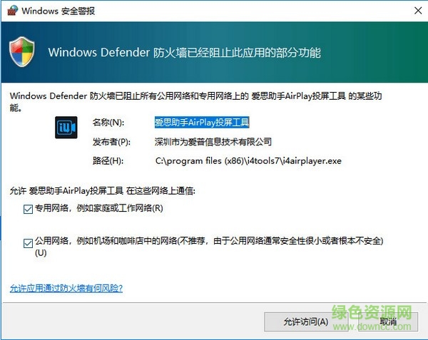 首次雙擊打開【手機投屏直播】,會彈出安全警報,我們點擊允許訪問;