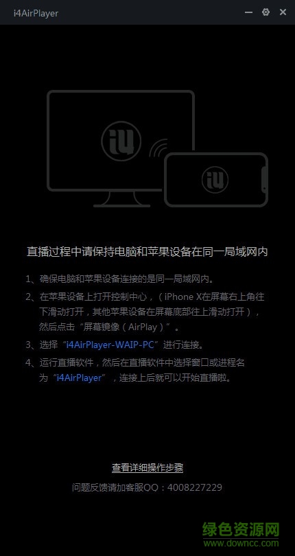 1、通過【手機投屏直播】工具連接設備,過程中請保持電腦與蘋果設備在同一個局域網內;