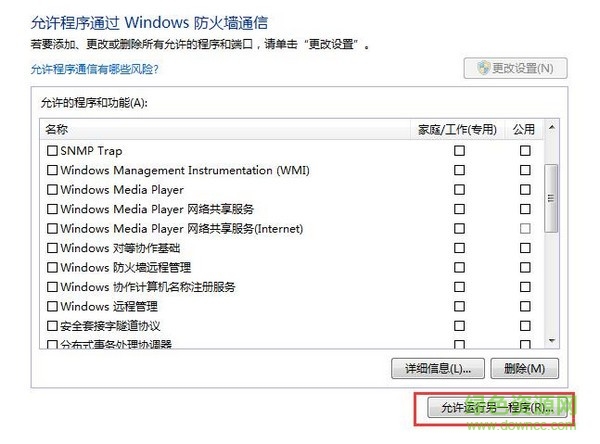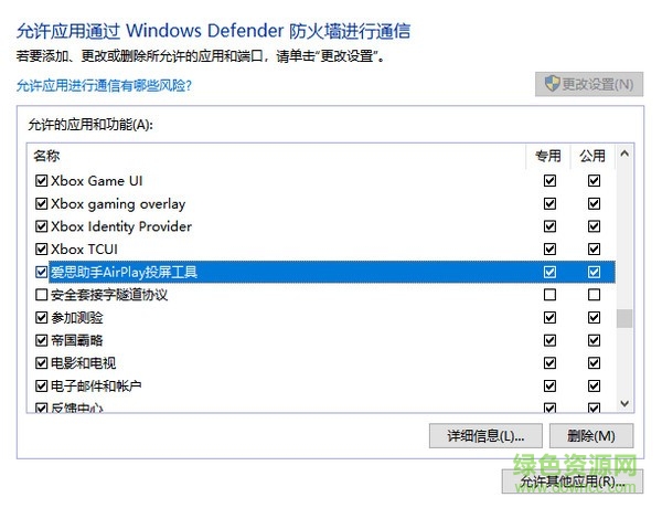 4、此時如果無法連接,請到【控制面板】---【所有控制面板項】---【Windows 防火墻】---【允許程序或功能通過windows防火墻】中找到【愛思助手AirPlayer投屏工具】和【Bonjour】并打勾;