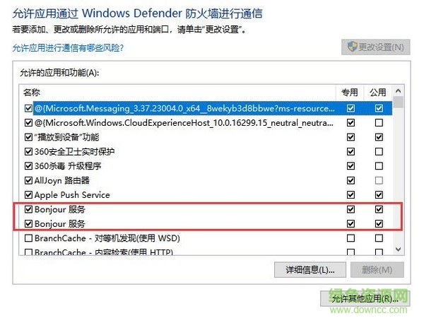 6、【Bonjour】添加方法同上,找到路徑C:\Program Files\Bonjour\mDNSResponder.exe,添加即可;
