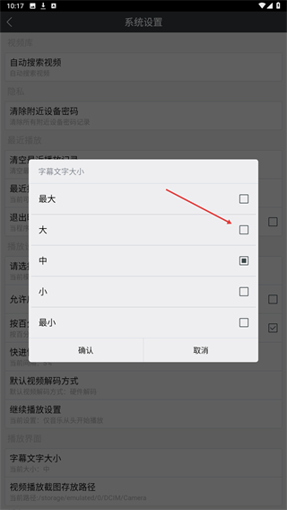 4、當彈出字幕文字大小設置的頁面,選擇并點擊即可設置成功。