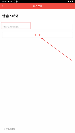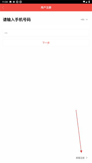 2、進入用戶注冊的界面內,點擊右下郵箱注冊的按鈕。
