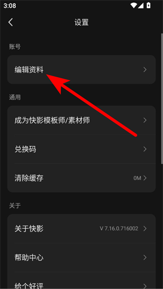 3、在設置頁面點擊編輯資料,進入編輯資料頁面。