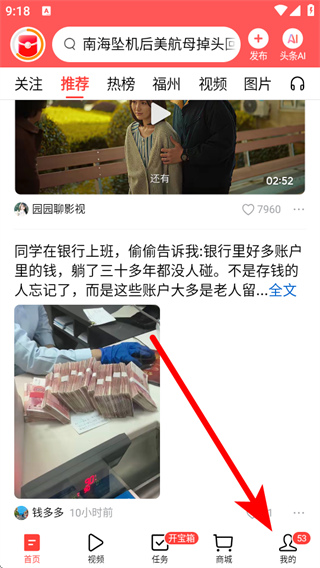 1、打開今日頭條APP,點擊底部導航欄的我的,進入個人頁面。