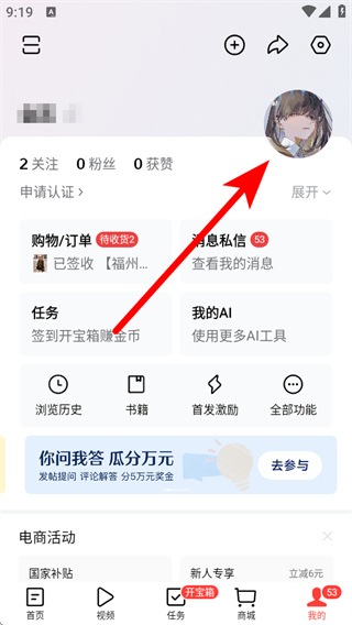2、在個人的頁面中,需要點擊自己的頭像,進入頭像預覽界面。