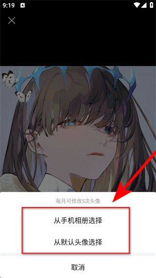 4、可選擇從手機相冊選擇或從默認頭像選擇,按照提示完成頭像更換操作。