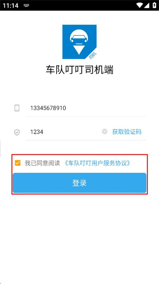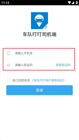 1、打開車隊叮叮司機端,進入登錄頁面,點擊手機號輸入框填寫對應的手機號碼。
