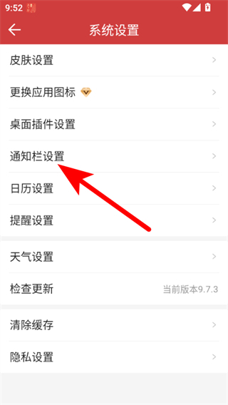 4、在系統設置頁面,點擊通知欄設置選項進入插件與通知欄頁面。
