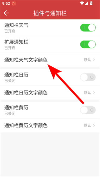 5、在插件與通知欄頁面,點擊通知欄天氣文字顏色選項可調整其顯示樣式。