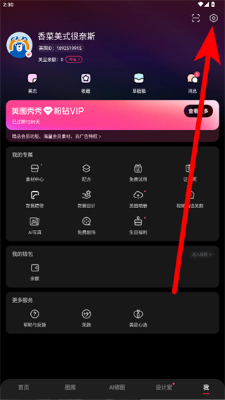 2、在個人頁面中點擊右上角設置圖標,進入設置頁面。