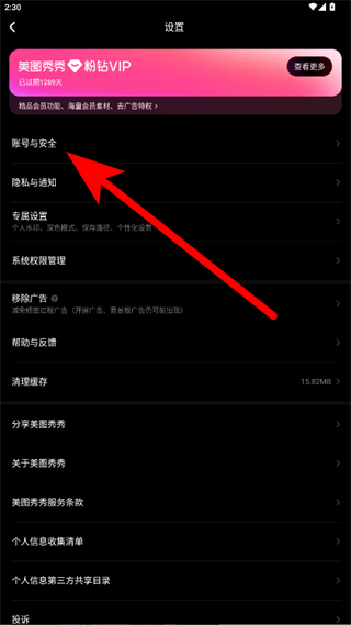 3、在設置頁面點擊賬號與安全,進入賬號與安全頁面。