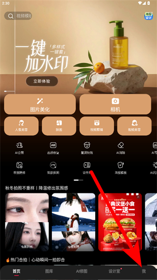 1、打開美圖秀秀APP,點擊右下角我,進入個人頁面。