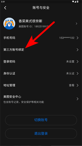 4、在賬號與安全頁面點擊第三方賬號綁定。